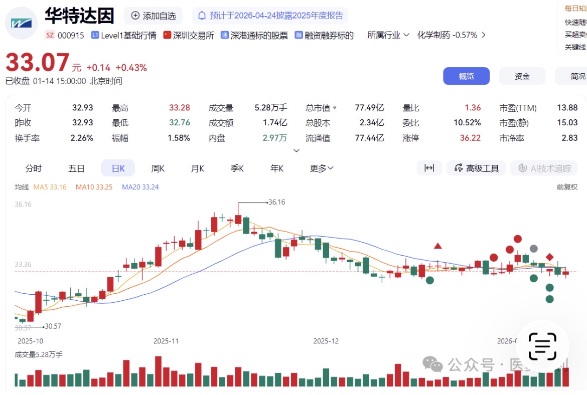 截至2026年1月14日,华特达因市盈率为13.88倍,低于行业平均水平。 低估值与高分红构成公司股价的潜在支撑。